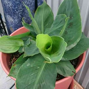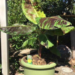 鉢植え三尺バナナ🍌 出てくる葉っぱの斑が薄くなってきました。 あんなに濃かったのにちょっとさみしい。