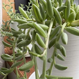 セネシオ「ドルフィンネックレス」「アーモンドネックレス(京童子)」 どちらも凄い勢いです ドルフィンネックレスのプランターには、とりあえず置いといた葉挿しが😅 アーモンドネックレスのプランターには、とりあえず挿しといたレモネードが😅 ズボラにも程がある💧