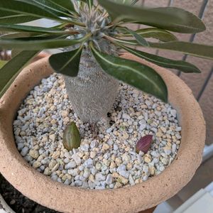今晩は🌟 今日は午後から用事で千葉へ🚄 滞在のホテルまでやっと戻ってきました_: ( _๑´д`) :_ツ.ツカレタ… なので昨日撮ったpicで失礼します😅 2ヶ月程前にお迎えした198円アデニウム🪴 ☀️が好きだとか? 久しぶりの☀️太陽さん♬ アーモンドネックレスさんもお邪魔してます (^▽^)ノ☀️