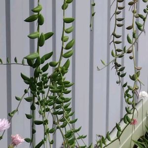 放置のアーモンドネックレス 伸びて伸びて ついに土に到達したようで ガッチリ根が出てました。 で、配置替えで引っこ抜く…😅 どうりで最近元気だなと思ってたんだよね、土ゲットしてたんだねー🌟 この子もいい加減植え替えしないと…