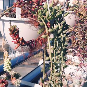 2/14(金)10-17 営業です。 本日は、店主は終日在宅予定です。 ちまちま屋産、新入荷商品のご案内です。 どちらも在庫は一点のみです。 ★ドルフィンネックレス ハンギング缶 700円 そのままハンギングして飾れる缶に植えてあります。 葉っぱもぷっくりしていい感じに育ってます! その名の通り、イルカの形の葉っぱがチャームポイント。 グリーンネックレスは夏にはちょっと弱いのですが、ドルフィンネックレスはまあまあ強いです。 ただ、寒さには少し弱いので、霜には当てないよう注意してください。 防寒すれば外で冬越し可能です。 ★アーモンドネックレス 3号ポット 500円 これは、だいぶ自由に暴れていますが(笑) 実はあまり売っていないアーモンドネックレスです。 まるでアーモンドのような、ぷっくり葉っぱが可愛い! そしてアーモンドネックレスは、かなり丈夫で、夏の暑さも冬の寒さもへっちゃらです。 ルビーネックレスと並ぶ、最強ネックレス系かもしれません。 つるが太くて強いので、小さい鉢だと育てにくいのですが… 大き目の寄せ植えなどに使うと素敵です。