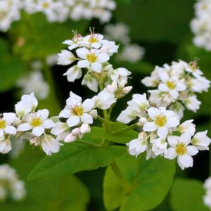 🍀🌻🪴💐🌹🌻🍀 🍀💚🤍そばの花🤍💚🍀 💐そばの花言葉は(懐かしい思い出) (喜びも悲しみも) (あなたを救う) (幸福) (一生懸命) (誠実)などです 💐ソバ属は大きく分けると普通種、 韃靼(ダッタン)種、宿根(シュッ コン)種の3種類に分けられます 💐そば(蕎麦)はタデ科・ソバ属の一 年生草本です、原産地は中国西南 部、開花期は5月~6月、8月~9 月です 💐気候の順応性が高く、乾燥にも耐 えるため干ばつ時の植物としても 優秀なことで有名です 💐そばは昆虫が花粉を運ぶことによ り他の個体と交配されて実を結ぶ 他家受粉作物であるため自然交雑 しやすい性質があります 🍀🌻🪴💐🌹🌻🍀