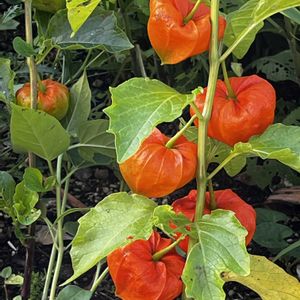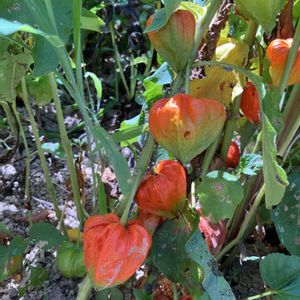 🌺🌻🪴💐🌹🌻🌺 🍀💚🧡ほおずき・鬼灯(ホオズキ)🧡💚🍀 ホウズキが色付きました、オレン ジとグリーンのコントラストが綺 麗です 💐初夏から夏にかけて見頃を迎える ホオズキの花言葉は(自然美)(心の 平安) (偽り)(ごまかし)(私を誘っ て)(私を誘惑して)などです 💐ホオズキは萼(がく)の中には小い さな実があり、中はほぼ空洞です 💐ホオズキの草丈は60~80cmと小 さく育ち、ホオズキのイメージを 象徴するオレンジ色の袋のような ものは花が咲いたあとにできます 💐花の咲いた後の萼が実を包むよう にふくらみ徐々に熟して緑からオ レンジ色に変化することでつくら れます 💐和名を鬼灯、鬼燈、酸漿(ホオズ キ) 、別名は酸漿(サンショウ) 輝 血(カガチ) 赤輝血(アカカガチ)奴 加豆支(ヌカズキ)です 🌺🌻🪴💐🌹🌻🌺