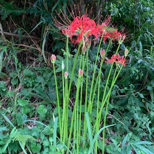 🍀 曼珠沙華🍀 彼岸花、リコリス・ラジアータとも 言いますね❣️ 蕾が清々しく、花壇に秋の彩り😊