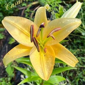 イエローカサブランカ コンカドールが咲きました💛 オリエンタルリリーの,黄色い百合は太陽の様です🌞 日本の山百合から、たくさんの品種が改良されてます