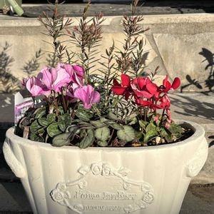 寄せ植えを作りました🪴 メラレウカ・レッドジェムの前に3種類のミニシクラメン(クレヨン・コウム・ジックス)をあしらいました🌸