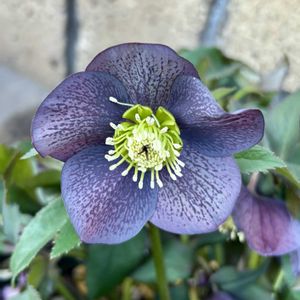 クリスマスローズ パープルのシングル ネット気味のスポット花 ネクタリーのマスカットカラーが可愛いです。 10年の古株さんです。