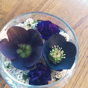 今日は朝から韓国語で、これから仕事なのですが、これだけやっておきたくて…。クリスマスローズの水盤です💕 だいぶ咲き進んで褪色してるものが多いです。あと3〜4株咲いているのがあるけど、すごく咲き進んで傷んでいたり、今咲き始めたところだったりなので、入れませんでした。 そろそろ来シーズンのために花切りしなくちゃと思いつつ、まだ切れずにいます。