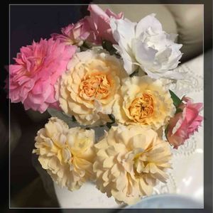 おはようございます☀ 今日も暑くなりそう💦 今朝の薔薇🌹 コラージュにしました💕 左上 アンブリッジローズ 右上 プシュケ 中 ルシエルブルー 右下 ヘレン 左下 ケルビーノ 上のアプリコットのふたつは半日陰の裏庭に植えていますが、ゆっくり綺麗に咲いてくれました✨✨✨ ルシエルブルーさんは昨年夏にお迎えしてすぐに地植えにした子ですが、よく咲いてくれています💕ただそんなに大きくならないみたいなのでPot向きかもしれないですね✨ 左下のケルビーノくんは鉢植えにしてましたが、新しい花壇に移植しました。結構な横張りタイプ!お隣のクィーンオブスェーデンさまとは対照的な樹形です😆✨ 右下のヘレンさま💕花壇でERクレアオースチンの隣に植える子を探していて、なかなか決まらずはなはなショップさんに電話相談したところ、自然な扇形樹形になり花壇に向いていると勧められた薔薇です✨なんだか乙女チックなお花が咲き出しました💖