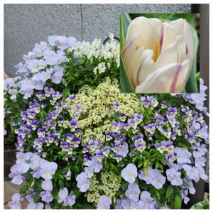 皆で育てよう、ヒヤシンスも、後半に、差し掛かってきました。 なんとか、紫、枯れてきつつも、脱皮して、復活の兆しの我が家、 白も、2番花、待機中です。 まともに、開花のピンクも、チューリップ、みたいです。 水耕栽培のかたも、土植えのヒヤシンスの方も、もう少し、楽しみたいと思いますので、タグ付けて、ご参加してくださいね。 足元のオアシスに、ビオラ系放りこみました。 がさつだけど、綺麗やー(笑)