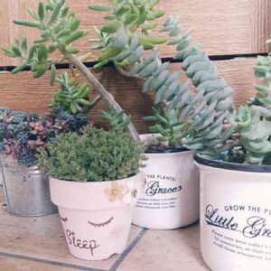 改良版のステンシルシートを使って試作品✨ パンダちゃん🐼大好き💕 sleepちゃんも安定の可愛さ😍 園芸店で購入の3号鉢(右)と2.5号鉢(左)はDAISOで購入の2.5号鉢(中)に比べ、やっぱり物がいいね〜😆 これからは園芸店で買おう🙌
