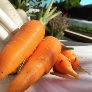 ニンジンが採れました 今年は発芽が難しく育ちも小さめでしたが 料理して食べたら美味しかったです