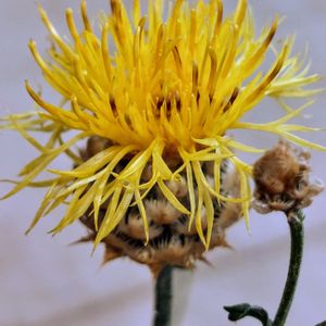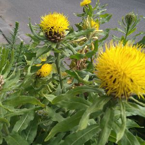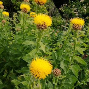 キバナヤグルマギク(黄花矢車菊)💛 別名黄金矢車菊とも呼ばれるそうです 名前を知る前は紅花かアザミの種類かなと思い かってに紅花の黄色いのって呼んでました💦😁
