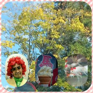 おっす❗オラ野沢雅子❗❗ このモノマネ大好きヒロシですΨ( ̄∇ ̄)Ψ そして高山、郡上八幡の〆は富山のタマゴアイス🍦です。味は、タマゴボーロ風です。 何故かここの店は馬刺しの旗があるので一緒にパシャ📷(笑)❗ 近くの紅葉とお店の金魚も添えて見ました。
