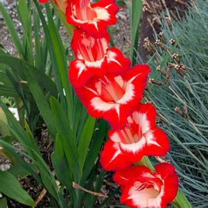 8月12日 今日のお花 ♥❤️🩹🧡❤🤍🌿グラジオラス🌿🤍🧡♥❤️🩹 昔から夏の花壇では定番の花。 グラジオラスという名前は、ラテン語の「小さな剣」に由来し、葉が剣のように長くとがっていることから付けられたいわれる。 別名 トウショウブ、オランダアヤメ、スウォードリリー 花期 7〜9月(夏咲き) 3〜5月[春咲き) 草丈 60〜150㌢ 剣のような葉と、縦に並んだ華やかな花。
