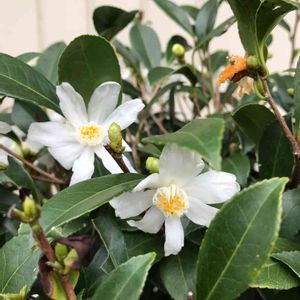 おはようございます☁️ 我が家に1本だけの椿 ちっちゃな白いお花が咲き始めました💕 週始め曇り空ですが 今日も笑顔で頑張りましょう (ง •̀_•́)ง