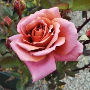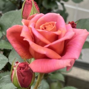 こんにちは⛅️→☁️ GSで皆さんの素敵なバラが次々投稿されるのを「いいなぁ🤤」と指をくわえて眺めていたのですが、ようやく我が家のバラも咲き始めてくれました⸜(*ˊᗜˋ*)⸝⋆* トップバッターは2年目の禅ローズ「禅」です🌹🌿 昨年は台木から咲いた「ロサオドラータ」に続いて2番目の開花だったので、順当ですね😉🎶 今回はピンクにレンガ色が入ったような比較的明るい色で咲いています( ˃̶͈ ᴗ ˂̶͈ )♪💓 さあやさんの🏷️『バラはいいなぁ』これからどんどん使わせていただきますね(*´艸`*)♪
