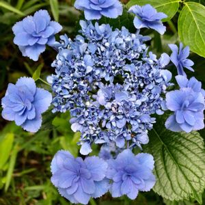 「おはよう(ブルー)」 このアジサイの品種名です。 咲き進むにしたがって、ますます青くなってきました🎵 (*^▽^*)🎶 頑張ろう❗日本‼️ 👊✨