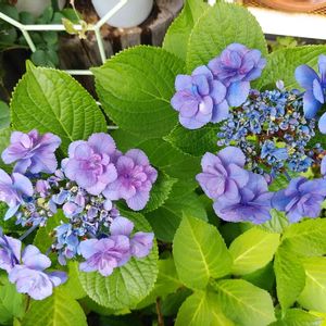 アジサイ おはよう 3鉢の色の変化です♪ 青系がもっと良く出ると いいな