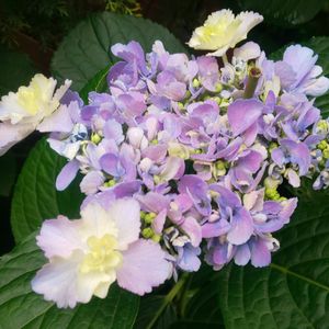 アジサイ「おはよう」 KAMOセレクションの中でも 特別にきれいな子だと思います。 ピンクも可愛いけど ブルーは特に美しくて 淡い紫色は幽玄の世界。 KAMOセレの中でいちばんお気に入りです。