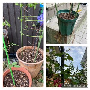 鉢で管理していたクレマチスを地面に直置きしていたら動かなくなった問題💦工事のため、どうしても動かさないとないので掘り上げてみたらこうなってました💦だいぶブチブチ切れてしまったような。。。大きめの鉢に植え替えてみたけど、生き残ってくれるか。。。あと2鉢動かないのが、ロウグチとプリンセスダイアナ😅咲いてるし今日はできませんでした。。。