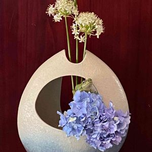 6日はカエルの日🐸 当方まだ6日の午後でございます。 うちのアジサイとニラの花。 カエル🐸は里帰りした時にゲット🥰