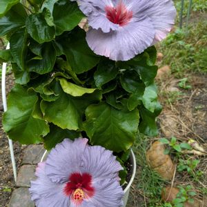 こんばんは~😃🌃 22日に2輪咲いた 🌺ハイビスカス🌺デニムブルー🌺 1日花なのに… お天気が崩れ涼しくなり今日まで3日間咲き続けました!!