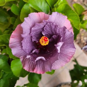 “ハイビスカス” 『デニムブルー』 咲き途中は ピンクも入っていて かわいいです❣️ まだまだ、蕾があるので 楽しめそうです✨