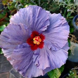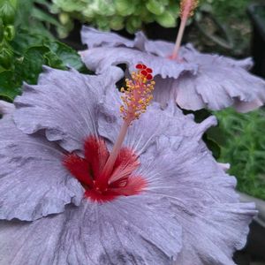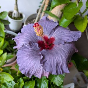 ハイビスカス デニムブルー✨🌺✨ ふっくら蕾も魅力的。 渋々色にシワ感の花びら、落ち着いたハイビスカスです😄💕