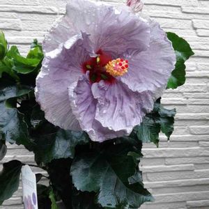 雨☔️降ってるのに、ガバッと咲いた ハイビスカスデニムブルー💙 ハイビスカスにこんな色があるの知って ビックリ‼️ 見つけた瞬間すぐお迎えしました💕