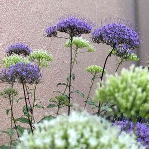 夕霧草 ディープパープルを主役に夏の寄せ植え☻* 観賞用トウガラシ'カリコ'や 光沢のあるパープルの葉が綺麗なストロビランテス'ペルシャンシールド'を一緒に♡