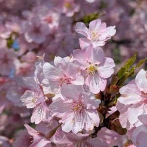 桜🌸いろいろ… 蕊長の梅、みんな素敵😍 《スライドpic》 ①プリンセス雅🩷 別名・雅桜 皇太子妃雅子様のご成婚を記念して名付けられた桜。 寒緋桜(カンヒザクラ)と大島系の山桜との自然交配種と推定されています… ②河津桜と🐶🐶🩷 3月、満開の桜を愛でながら🤳… えっ‼︎隣りでは大きなワンちゃん2匹がいたよ ~😅 初めて見る「オーストラリアン・ラブラドゥードル」デ、デカイ❣️ ③超絶満開のニワウメ(庭梅)🩷 ④オオシマザクラ(大島桜)🤍 ⑤シナミザクラ(支那実桜)🤍