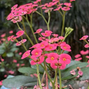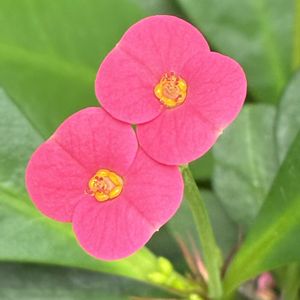 〜ハナキリン(花麒麟)〜 トウダイグサ科 マダガスカル🇲🇬原産の低木 フラワーセンターに可愛いお花鮮やかに咲いていました💕 スライドして下さいネ😉 2🫶 4🫶 8🫶🥳ピンク色の苞🩷 幹や枝には鋭いトゲ〜😱 花期が長く可愛いお花だけどこれがねーネックだわ🥳 2025 10/17 撮影