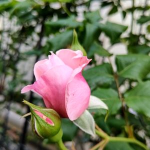ちょっと傷んでるけどナエマ🌹💕 今年は調子よくてポツポツ咲いてくれました☺️ つるバラだけど四季咲き性が強い、 でもほとんど枝先しか花がつかないから下の方にお花が少ない🥲 柔らかいピンクと花の形と香りがとても好き💓 今日は雨の中花壇に苗の植え込みをしたり、 鉢植えの配置がえをしました 週末ガーデナーなのに日曜日が雨だと萎えるよね🥲