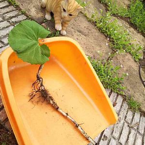 きのう庭のフキをエイヤッと 引っこ抜いたら、根っこがこーんなに 長かった 😱 でも、庭にフキが 生えてるって (~O~;)