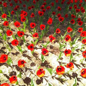 赤いチューリップ達 一斉にお日様にラブコール❤ ちと怖いわ~😅