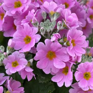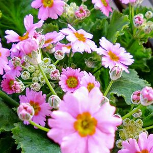 💠メラコイデス ガクや葉の裏に白い粉をつけるのが特徴で、日本では「化粧桜(ケショウザクラ)」とも呼ばれています。 ⚫︎サクラソウ科 サクラソウ属 ⚫︎原産 中国 ⚫︎花期 1月〜4月