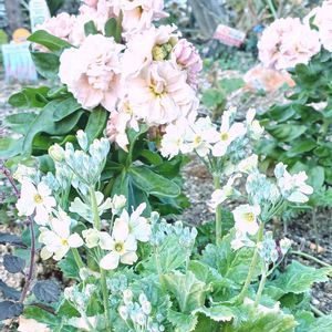 💐今日のお花💐 🌼サクラソウ🌼 お花屋さんにて 私はサクラソウとは相性が良くないみたいで昔、何回もお迎えしてきたのですが長く咲き続けることが出来ないので近年はお迎えしてませんが好きな花です(*^_^*) 通常→メラコヤマラコと 呼ばれるプリムラですがあまり聞き慣れていませんね(*^^*) メラコイデスかサクラソウの方が馴染みがありますよね(⌒▽⌒) 蕾や花に白い粉があるので和名では化粧桜とも言われるようですがほとんど使いませんよね😆 一年草だけれどこぼれ種から発芽することもあるみたい(⌒▽⌒) ピンク系が多いけれど白も素敵ですよね(#^^#)