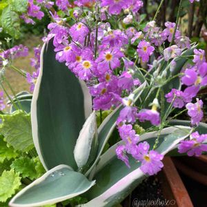 今日のお花 サクラソウ 我が家のサクラソウ(メラコイデス)は初冬に芽が出ていた小苗を鉢に寄せて、寒さが厳しくなってからは苗帽子をかけて(1月9日にpostしてあります)います。 霜にも雪にも負けないで大きくなって、ついに一輪花が咲きましたよ♪