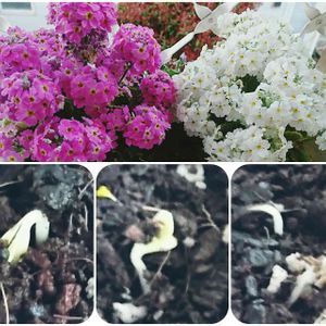 おはようございます🖐️😊☁️ ⬇️零れ種のアリッサムサンのお花が、夏場はお花が少しでしたが沢山咲きました😆⤴️💓 メラコイデスサンとペンタスサンとパシャ👀📷️✨ ⬆️可愛いビオラサンは、御一人様で吊り鉢に植えました😍 薄いオレンジ🧡色で可愛いので、名付けて❰ピーチ姫❱と呼んでいます😊