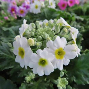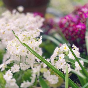 耐寒性メラコイデスがようやく満開になってきた!😳✨ ツボミが咲きだしてから満開まで1ヶ月くらいかかった💦 ガーデンシクラメンもたくさん咲いてる🌼 後ろにある銀色の、今年はじめて育ててるプラチーナもお気に入り💙