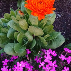 キンセンカとメラコイデスが花壇にきれいに咲きました💮💮💮 ピンクパンサーかメラコイデスか解りません教えてください🌸