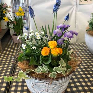 春の寄せ植え😀 素焼きの鉢で❤️ 作りました🎵