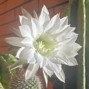 咲いてた✨(ღ✪v✪)🫧🤍 もう1つのサボテンさん 咲きそうだったので お風呂上がりに🛁外へいく🌙*゚ 真っ白なお花❁⃘*.゚ステキ 風が心地いい〜( ͜❁≋ ・ω・) ͜ ❁≋ 月も🌙*·̩͙キレイ 目悪いからぼやけてますけどね🤭