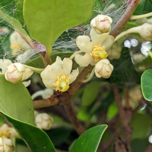 庭のイヌツゲ よく見るとたくさん花が咲いていました かわいいじゃないか🤭