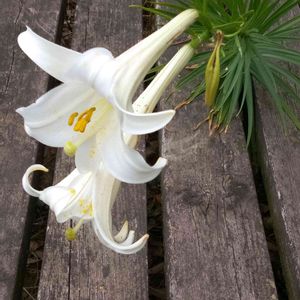 庭のあちこちで咲いているタカサゴユリ😲 空いている鉢を見つけて咲いています💕💕