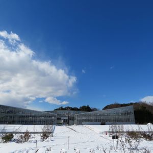 雪でスッポリ埋まったバラ園です、その向こうの建物が温室・・・こんな日は温室が私を呼んでいる!!(*´▽`*)