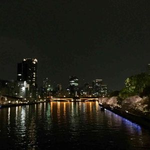 春に造幣局の夜桜見物に行く途中です。なかなかいい感じ!