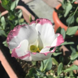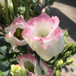 ピンクと白のバイカラーのトルコギキョウ 先日の大雨を乗り越えて開き始めました🐻 この株は2年ものです