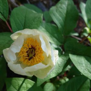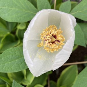 〜ヤマシャクヤク〜 昨年咲いていた所に今年も咲いていました(寺院の境内) そこだけぱっと明るく見えました 黄緑色の瑞々しい葉っぱと黄色い雄蕊が目立つ爽やかな白い花 花の形状から"白雪姫の花"と呼ばれているそうです 清楚で美しい花です ボタン科ボタン属 花言葉「高潔」「清らかな愛情」 実になってからも楽しめる花です